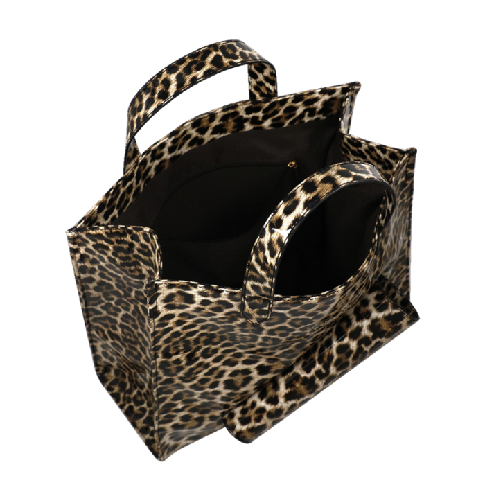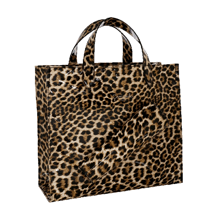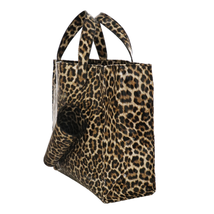 BORSA A MANO M RAINY BAG LEO: Abbiamo tante borse, ma …una per la pioggia? Ancora no! Dunque ci abbiamo pensato noi… Quando piove, hai bisogno di una borsa impermeabile, ma dove mettere l’ombrello? Abbiamo creato una sportina impermeabile con una pratica tasca porta ombrello, realizzata in materiale stampato animalier. Perché anche sotto la pioggia, lo stile non passa inosservato!
