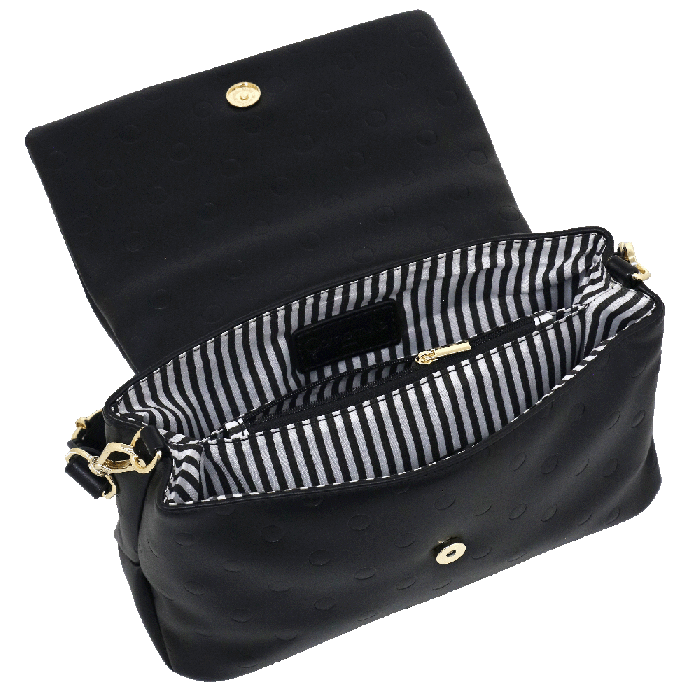 BORSA TRACOLLA PATTA S POIS COUTURE NERO, l’accessorio che non può mancare nel guardaroba di chi ama gli outfit versatili. Spaziosa e comoda, dotata di una comoda tracolla e divisorio con tasca interna, l’ideale per accompagnarti nelle giornate più frenetiche. I pois, iconici, intramontabili e sempre di tendenza, si fanno protagonisti in questa straordinaria collezione, impressi su una morbida pelle sintetica dal finish elegante. Il design gioca con il contrasto del vedo non vedo, grazie all’esclusiva texture total black, che esalta la raffinatezza di ogni accessorio con un’allure sofisticata e misteriosa. La linea si compone di pezzi estremamente versatili e chic, pensati per rispondere alle esigenze di ogni occasione.