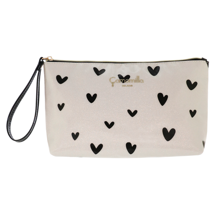 BUSTA M LOVE ME perfetto per organizzare i tuoi prodotti di bellezza e per contenere i tuoi trucchi in borsa. Love Me è una collezione che colpisce dritto al cuore con la sua carica di energia e vivacità. Immagina un’esplosione di cuori rossi su una base glitterata dorata: una linea di beauty case e pochette che riesce a mettere di buon umore al primo sguardo. È impossibile resistere a questa ondata di allegria! Non c’è modo migliore di iniziare la giornata se non con un grande sorriso, e il tuo rituale di skincare mattutino diventa subito speciale. Ma Love Me non si ferma qui. Per chi preferisce una variante più delicata, c’è una seconda versione della linea, caratterizzata da cuori neri che si stagliano su una base glitterata bianca. Una vera e propria esplosione di dolcezza e raffinatezza che rende ogni dettaglio unico. La collezione è sviluppata in diversi formati, pensati per rispondere a ogni esigenza: dalle pochette pratiche e versatili, ideali da tenere in bagno o da portare sempre con te per un ritocco dell’ultimo minuto, ai beauty case di vari formati, tutti eleganti e funzionali.