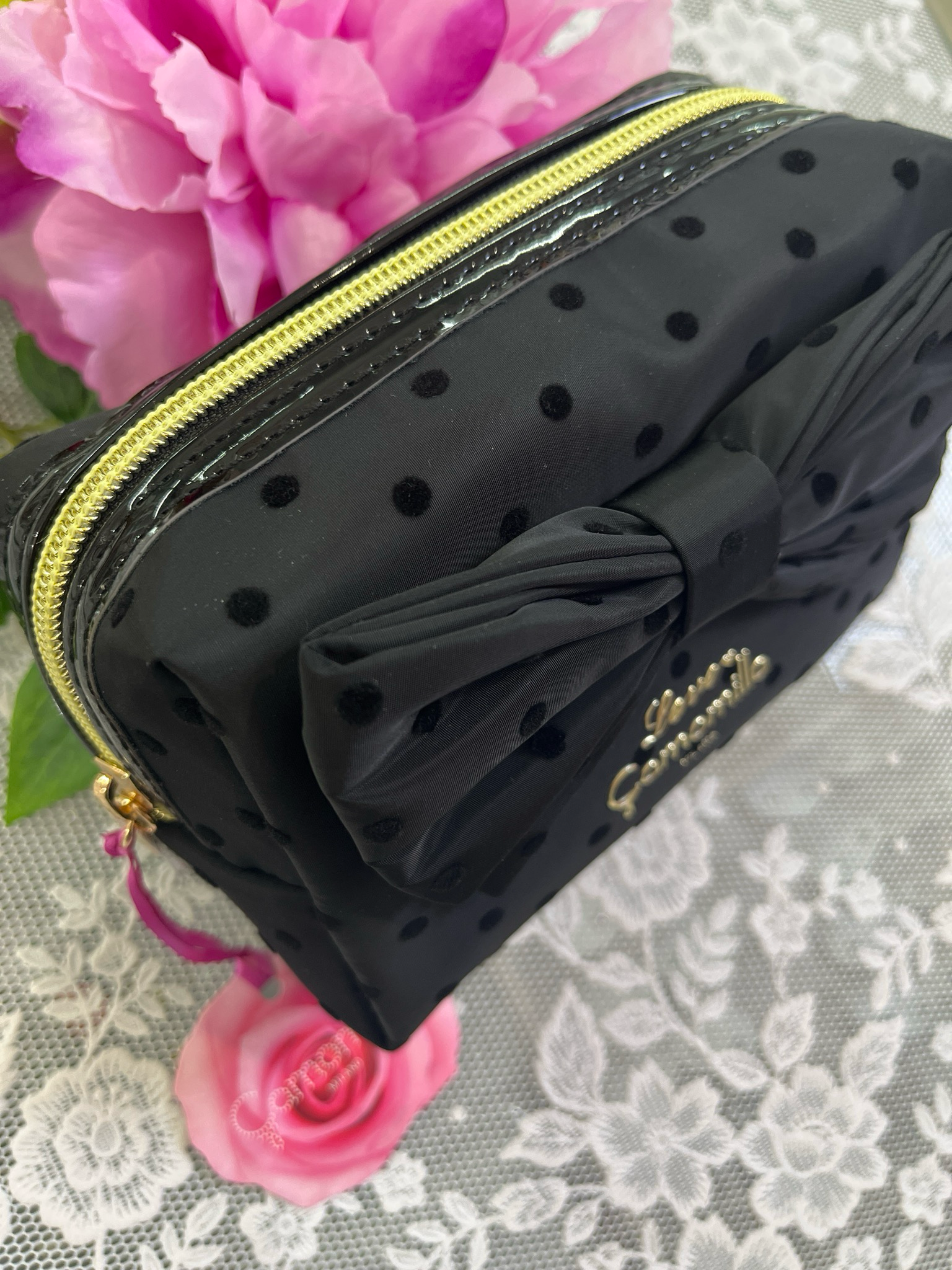 NECESSAIRE M POLKA GLAM , di media capienza e utile per contenere trucchi e lozioni. Una linea sofisticata, realizzata in materiale tecnico effetto satin, impreziosito da una pioggia di delicati pois ton sur ton. Polka glam incarna perfettamente lo spirito romantico e femminile tipico di Camomilla Milano, con un tocco moderno che la rende versatile e contemporanea. Le pochette e i beauty case della collezione sono eleganti e funzionali, arricchiti da un raffinato fiocco che aggiunge un tocco di romanticismo. Una linea pensata per chi cerca praticità senza rinunciare allo stile, ideale per accompagnarti in ogni occasione con un’eleganza.