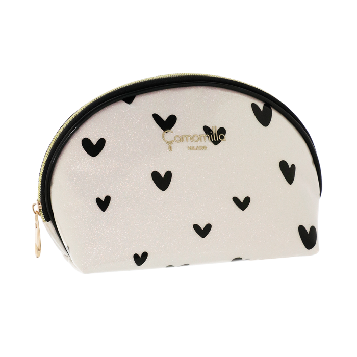 POUCH S LOVE ME molto capiente adatto per trucchi o accessori capelli, è anche perfetta per riporvi anche i tuoi accessori I tech. Love Me è una collezione che colpisce dritto al cuore con la sua carica di energia e vivacità. Immagina un’esplosione di cuori rossi su una base glitterata dorata: una linea di beauty case e pochette che riesce a mettere di buon umore al primo sguardo. È impossibile resistere a questa ondata di allegria! Non c’è modo migliore di iniziare la giornata se non con un grande sorriso, e il tuo rituale di skincare mattutino diventa subito speciale. Ma Love Me non si ferma qui. Per chi preferisce una variante più delicata, c’è una seconda versione della linea, caratterizzata da cuori neri che si stagliano su una base glitterata bianca. Una vera e propria esplosione di dolcezza e raffinatezza che rende ogni dettaglio unico. La collezione è sviluppata in diversi formati, pensati per rispondere a ogni esigenza: dalle pochette pratiche e versatili, ideali da tenere in bagno o da portare sempre con te per un ritocco dell’ultimo minuto, ai beauty case di vari formati, tutti eleganti e funzionali.
