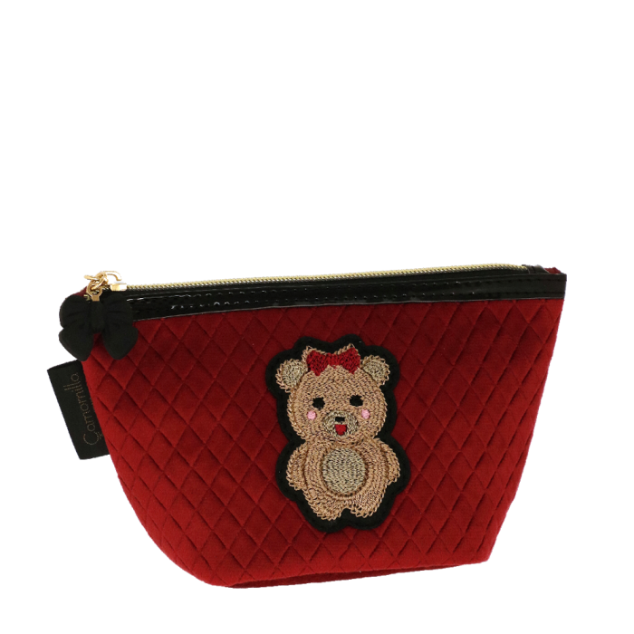 BUSTA S TEDDY CHIC ROSSO, in formato piccolo, comodo da tenere in borsetta, porta rossetto e accessori hi tech utili durante la giornata. Realizzato in velluto trapuntato in due varianti colore, patch ricamata applicata e tirazip con fiocco in gomma. Una linea ironica e giocosa, pensata per chi ama esprimere il proprio lato più dolce e spensierato. L’adorabile orsetta, chic e irresistibile, è cucita su un morbido velluto trapuntato, rendendo pochette e beauty uniche nel loro genere. Questa collezione è perfetta per chi si identifica nello stile kidult , perché in fondo non abbiamo mai dimenticato la bambina che vive in noi. Le nostre pochette raccontano la tua personalità, con un design che unisce tenerezza ed eleganza. La deliziosa e morbida icona dell’orsacchiotto, ormai una presenza amata sulle passerelle di tutto il mondo, non poteva mancare nella nostra collezione. Con tutta la dolcezza di una teddy bear, queste pochette in velluto nero e rosso sono perfette per aggiungere un tocco di morbida raffinatezza al tuo stile quotidiano, abbracciando l’eleganza senza rinunciare all’ ironia.