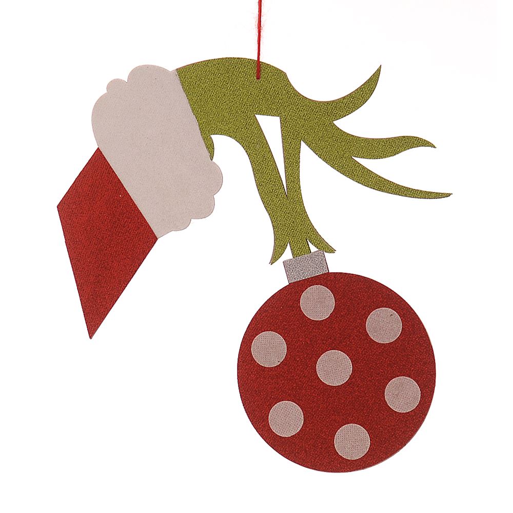 Decorazione mano Grinch realizzata in legno e glitter